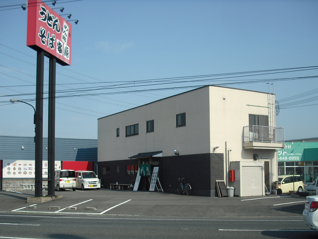 Pt.1 メインサインにはうどんの文字を大きく掲出(遠視)。力強い筆文字で掲出し専門性を高めるデザインにしました。