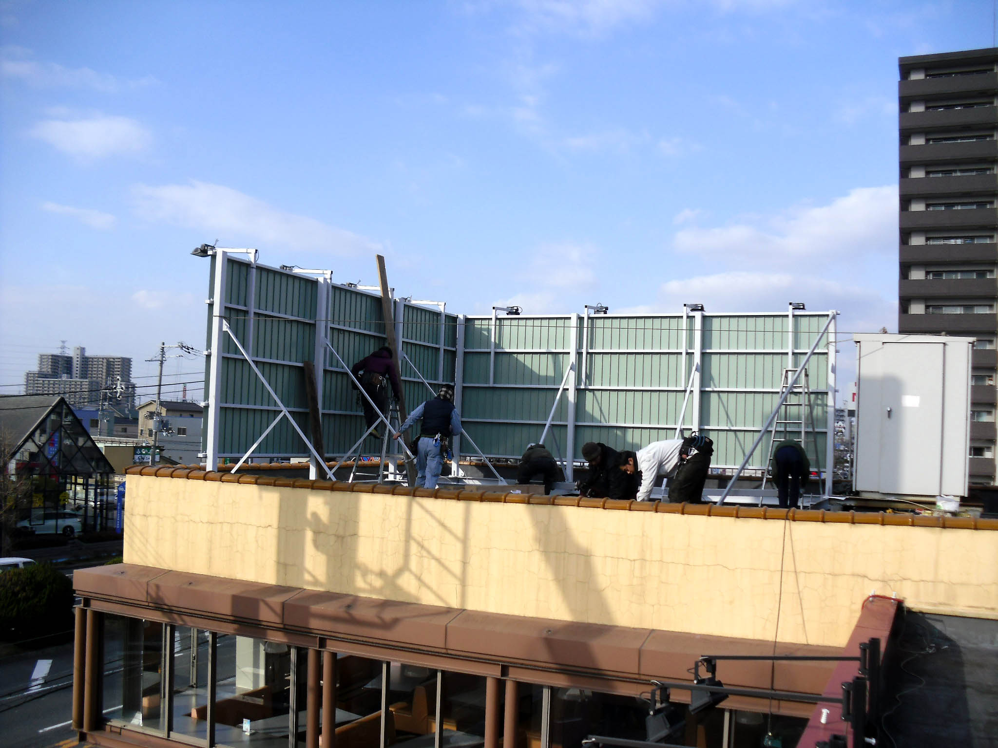 店舗の視認性を向上させる為、屋根上を利用し立ち上げ看板を制作。