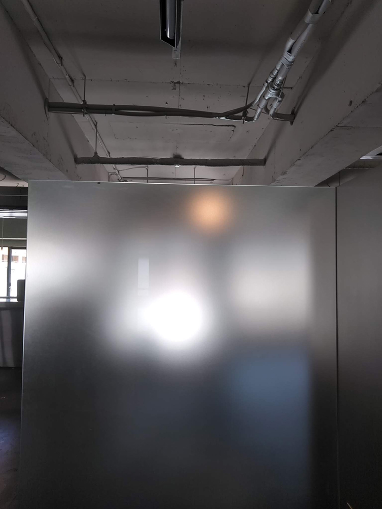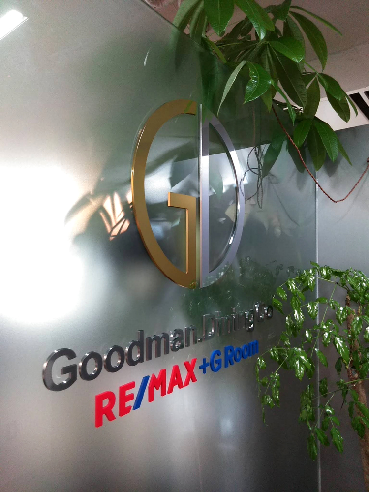 軽量のABS樹脂文字を光沢のある金属のように加工し、設置個所が窓ガラスの為、両面テープでの設置となりました。