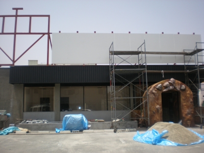 1. 店舗を大きく見せ、店舗誘導を促す為、メインサインを大きく設置。屋根上に大きく設置することで、