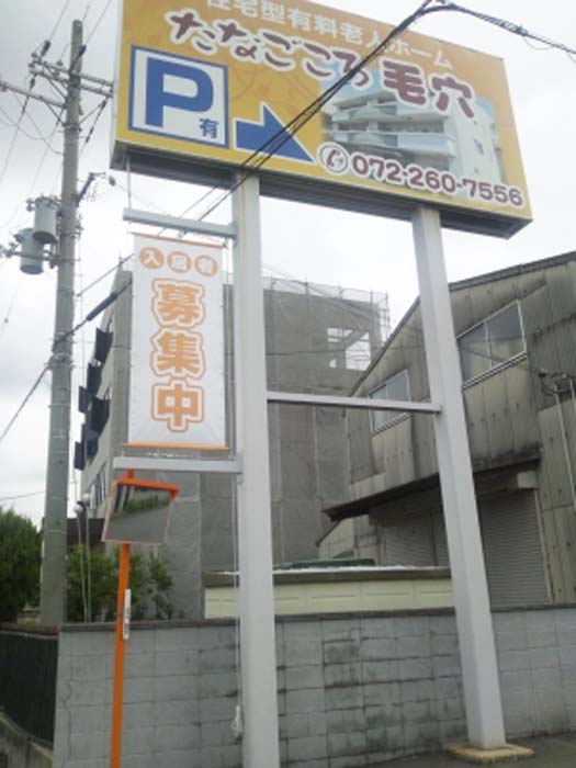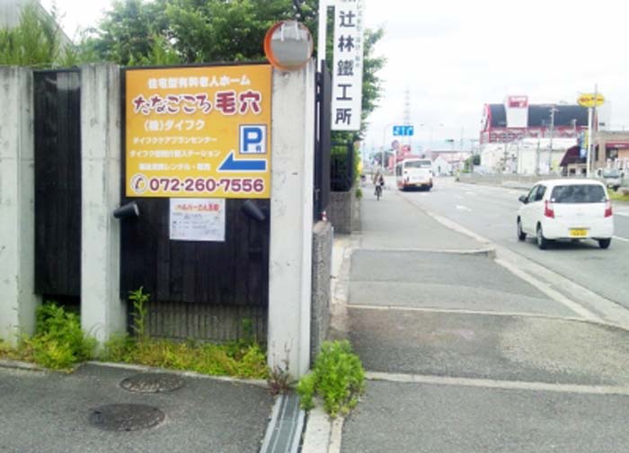 業態がわかるように写真入りで。介護施設ということもあり、やわらかい印象の色彩と文字を使用しました。(遠視)