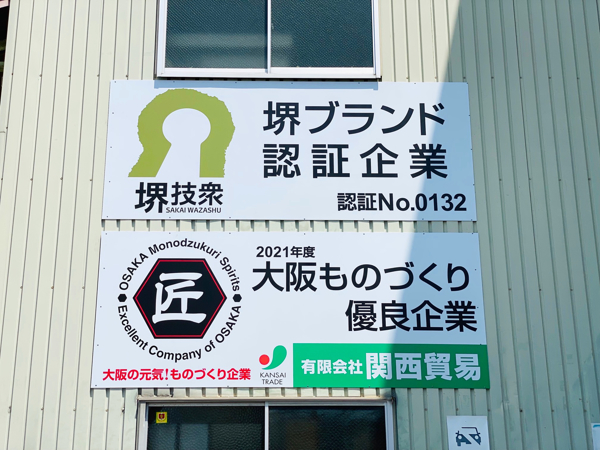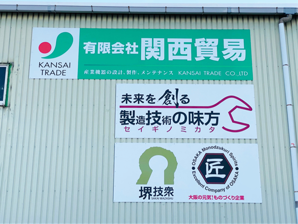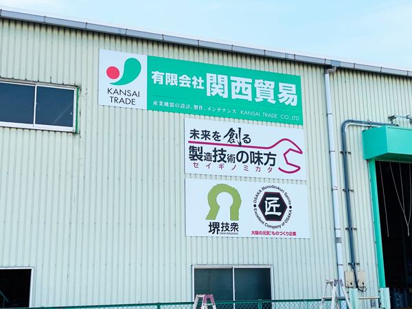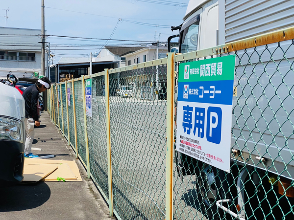以前、施工させて頂いた有限会社 関西貿易様。新たに壁面看板、駐車場看板を追加設置させていただきました。