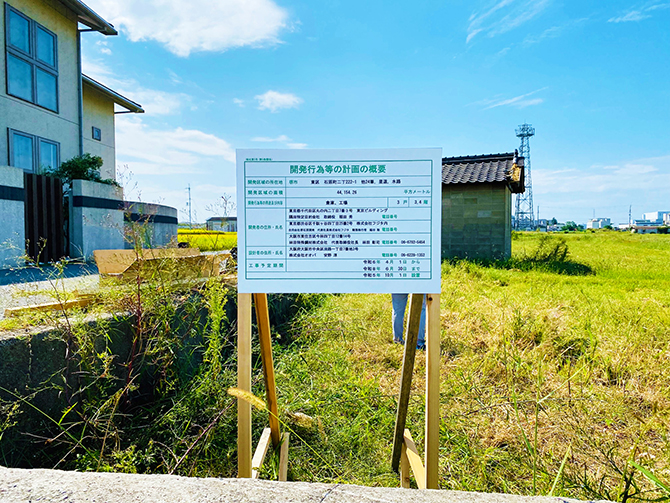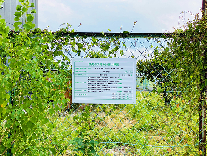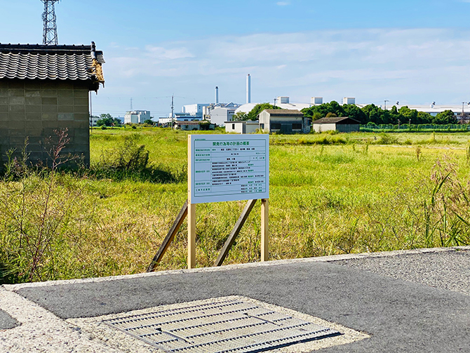 この仮設野立て看板の存在そのものが、確かにそこに開発される前の土地が存在したことの証明にもなります。
