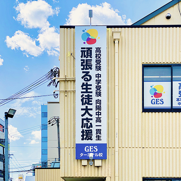看板は、その名のとおり主に板(アルミ複合板)で作られており、それを壁面に設置することがほとんどです。