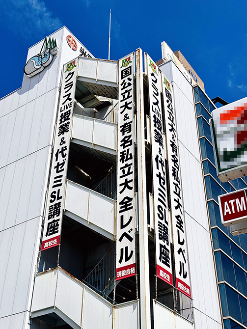 縦長で文字サイズを最適化し、建物の側面というデッドスペースを集客スペースに変えています。